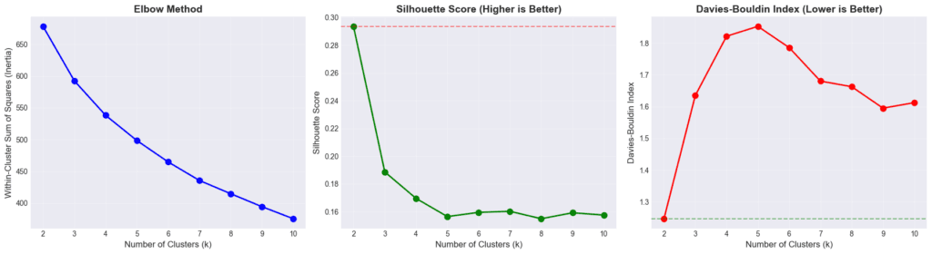 • L’indice de Davies-Bouldin (plus bas = mieux) : mesure la compacité des groupes par rapport à leur dispersion interne