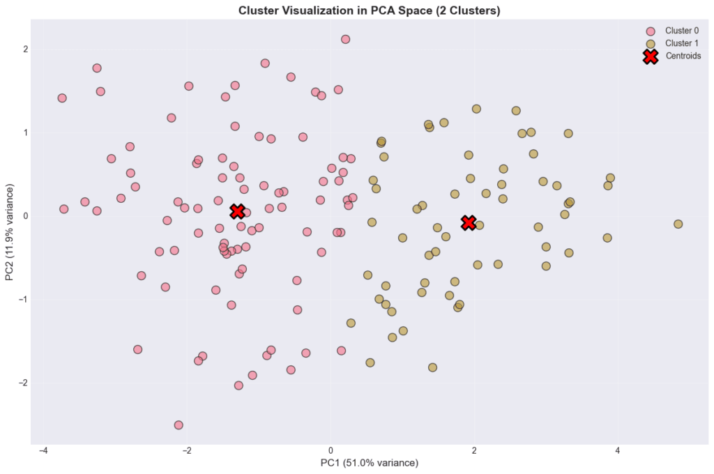 C’est un résultat courant en data science : la méthode la plus simple est souvent la plus robuste, surtout quand les données ont une structure claire. Ici, les organisations se répartissent naturellement en deux profils distincts, et le K-Means le capte très bien.